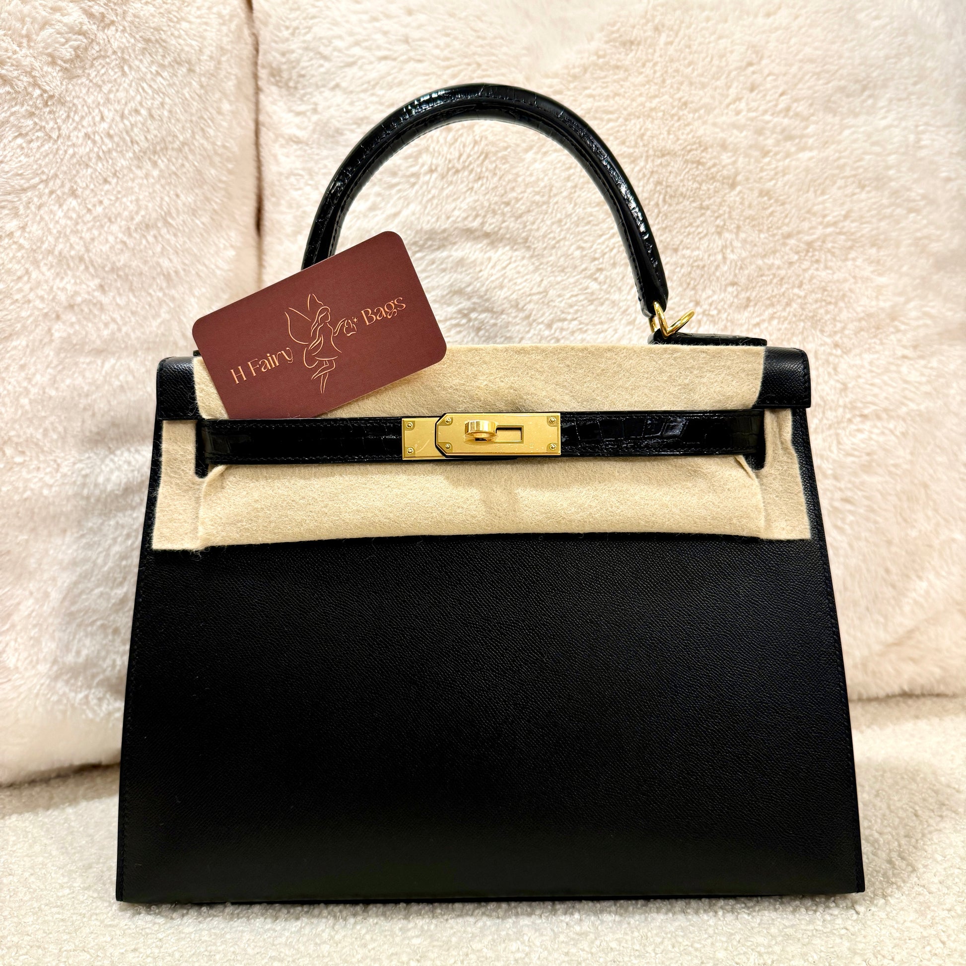 Hermès Kelly 28 Sellier Touch Niloticus Noir Gold Hardware